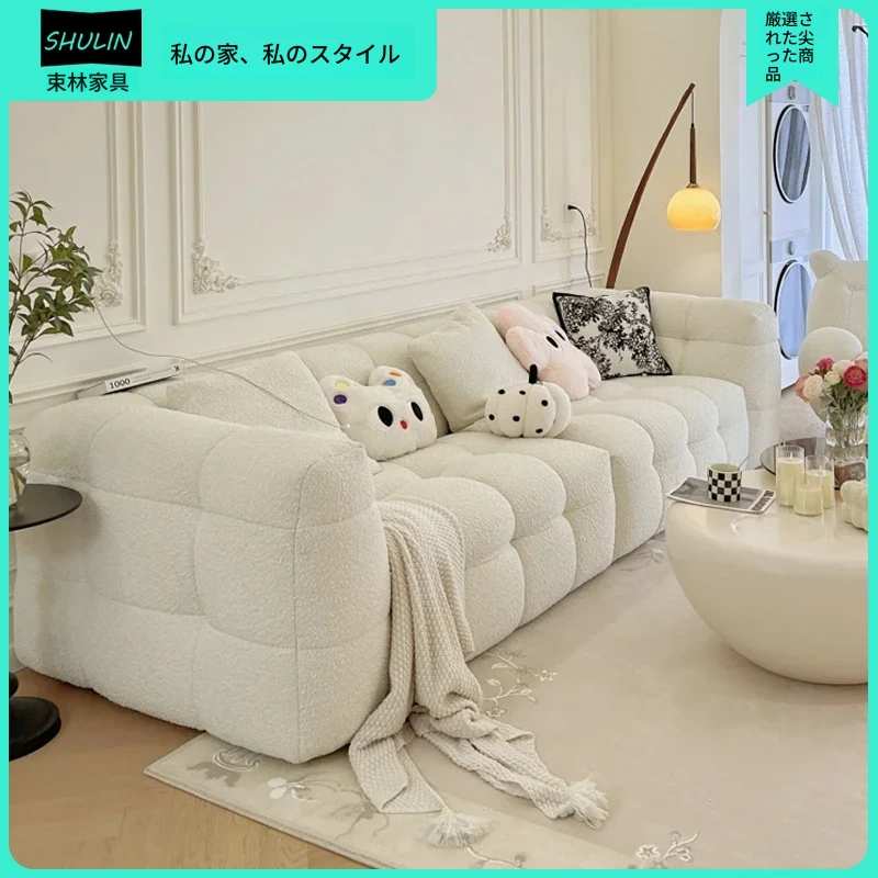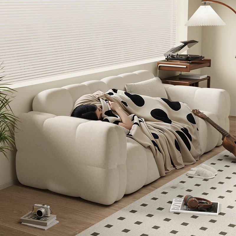 クリーム風味のマシュマロソファー|小型リビングに最適な人気の布製ダブルスリーピングソファ|ふわふわのラムスキン素材で、リラックスしたいあなたにぴったり!