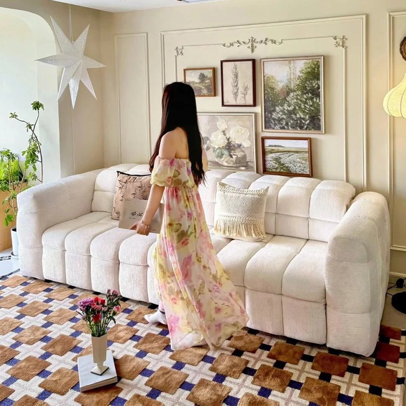 2025 New French Cream Fabric Sofa for Small Spaces - Modern Minimalist Design with Straight Double Three-Seater for Your Living Room