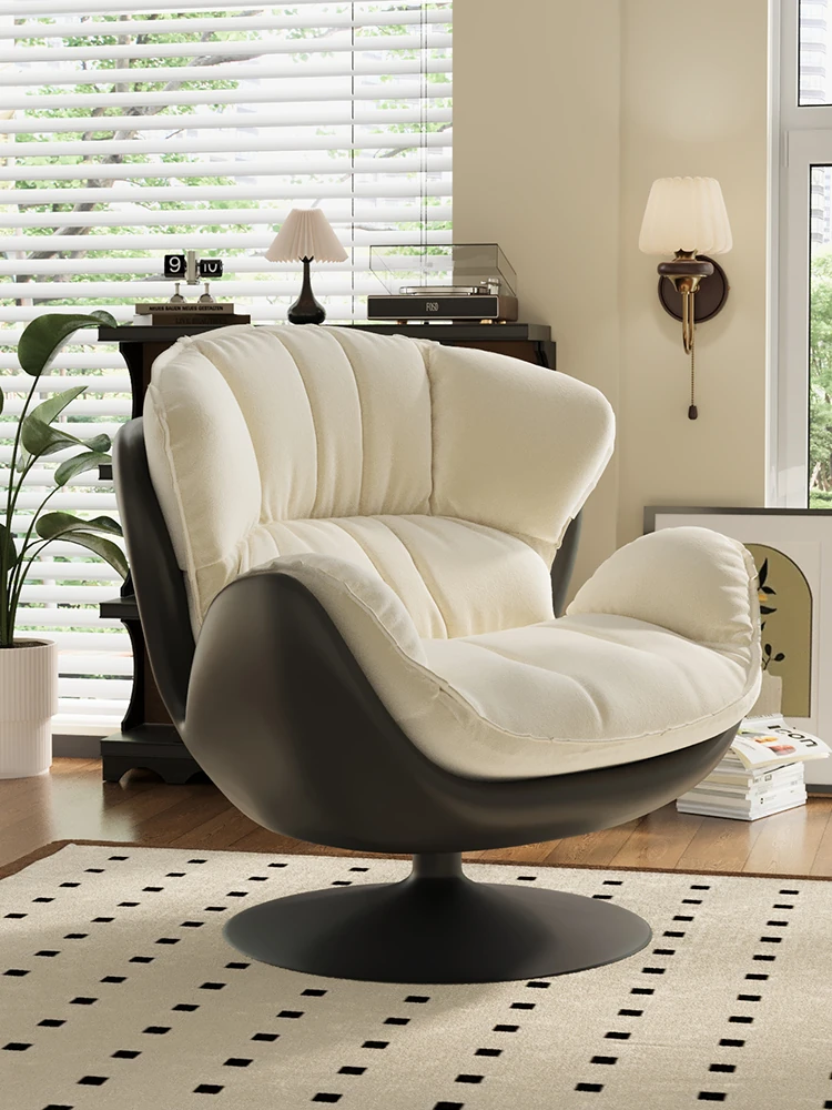 Eggshell Lazy Sofa Chair - Convertible and Rotatable Single Seat for Living Room, Bedroom, and Balcony Relaxation. Perfect for Lounging and Napping!