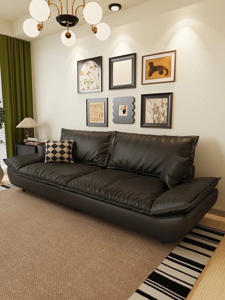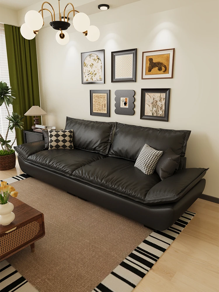 Modern Minimalist Black Leather Sofa for Small Living Rooms - Stylish 2-Seater and 3-Seater Options, Perfect for Vintage-Inspired Spaces and Cozy Bedrooms