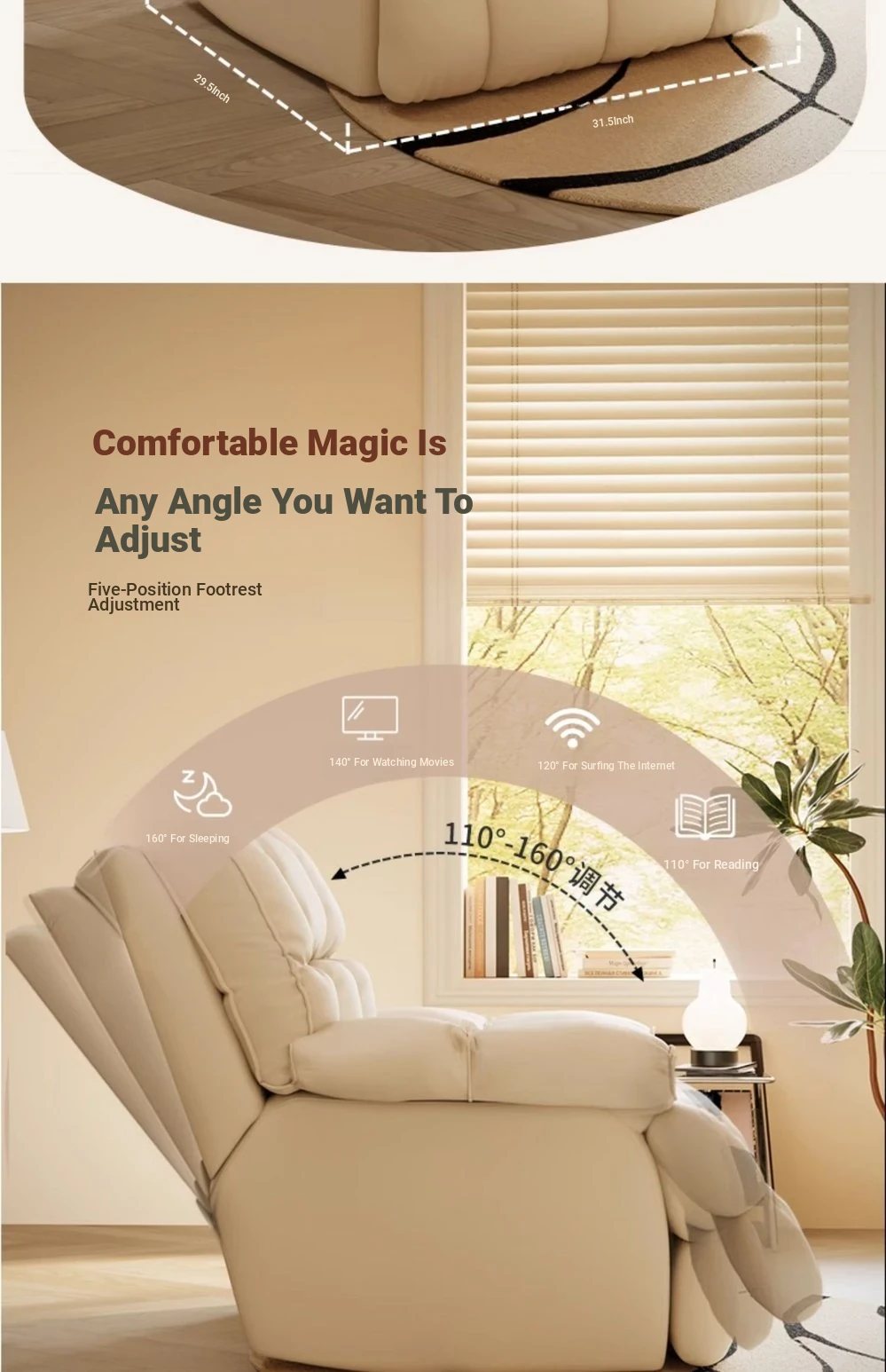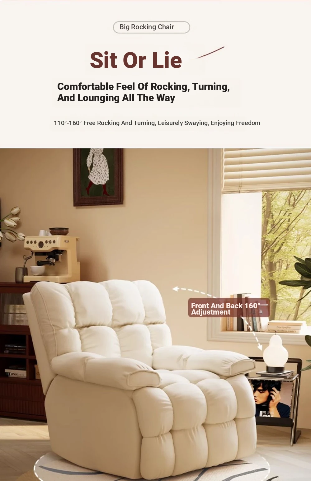 Cozy Lazy Sofa Chair - Reclining and Sleeping Single Seat, Swivel Design for Bedroom, Living Room, and Balcony - Perfect for Moms and Relaxation