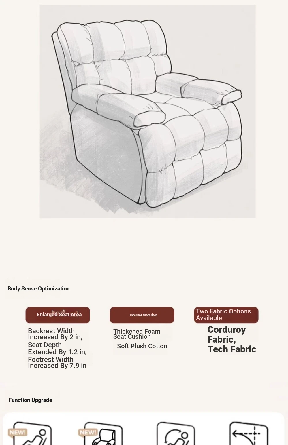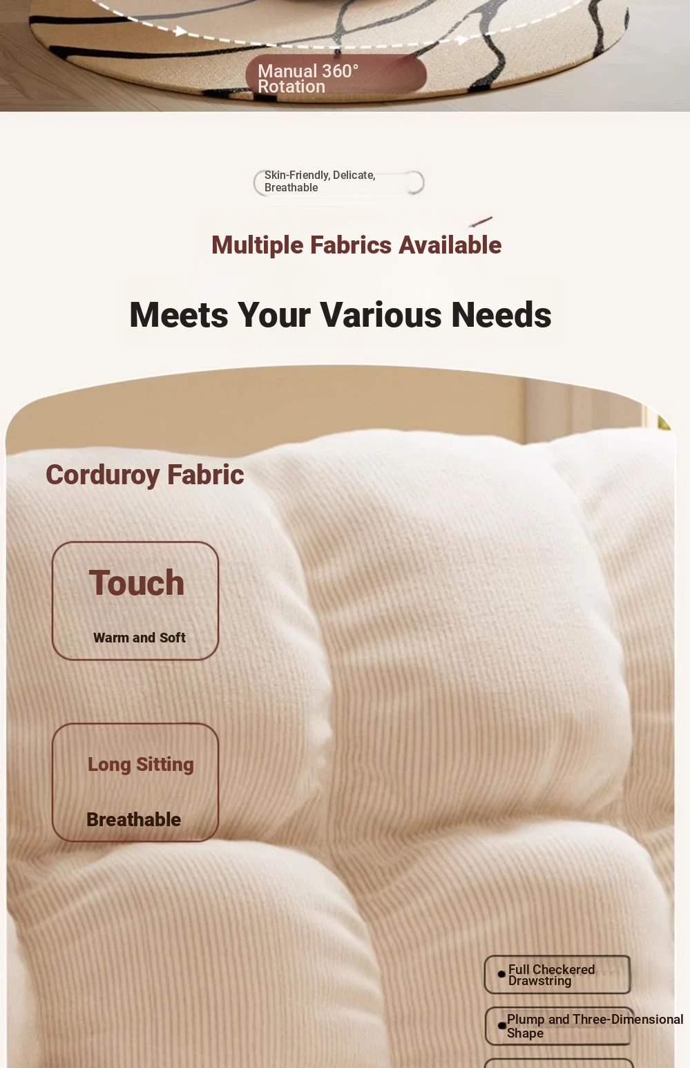Upgrade 360 Rotate [Comfortable corduroy-5th gear adjustment] Cream White