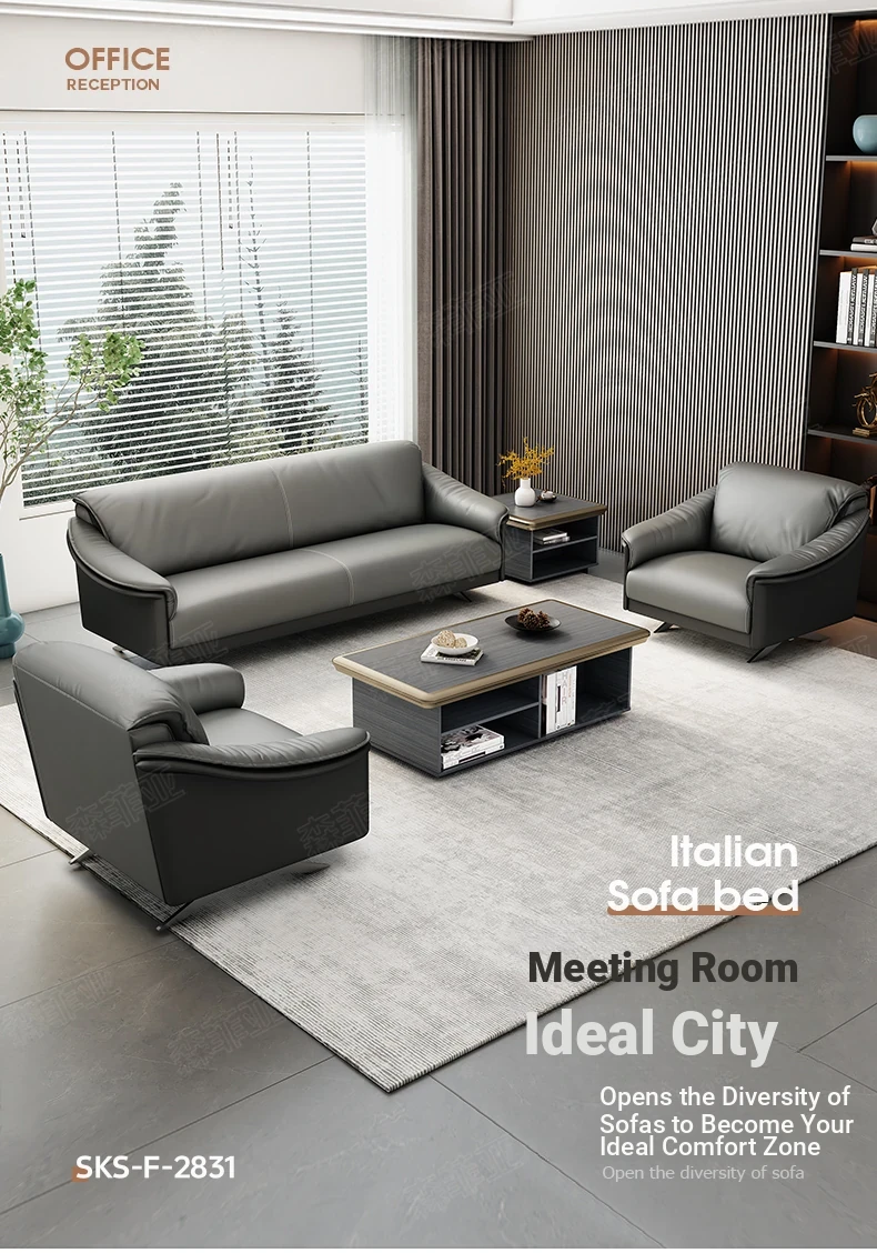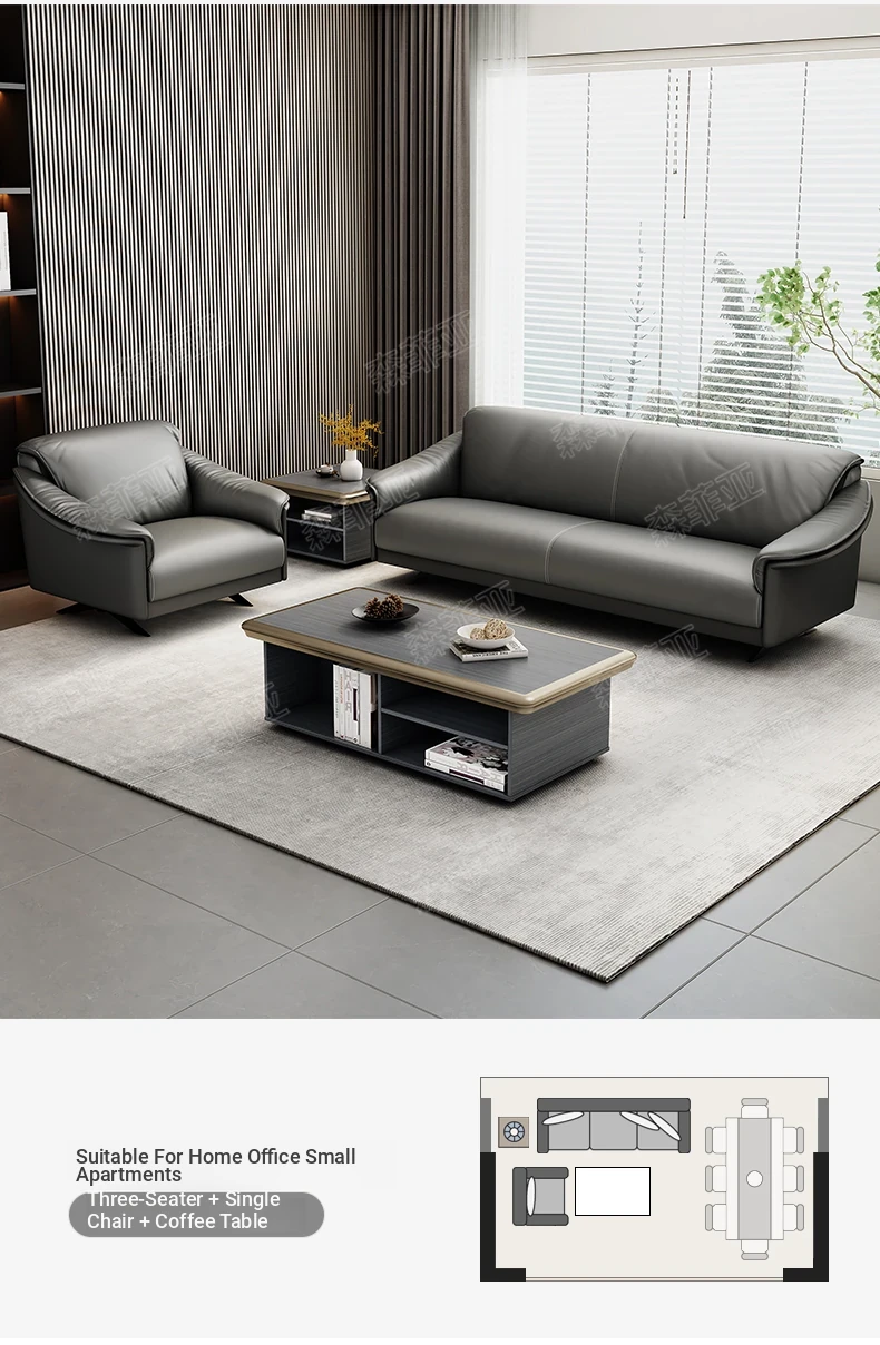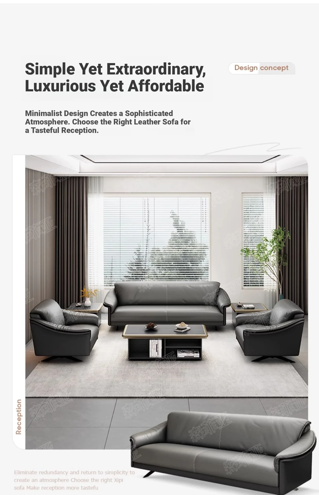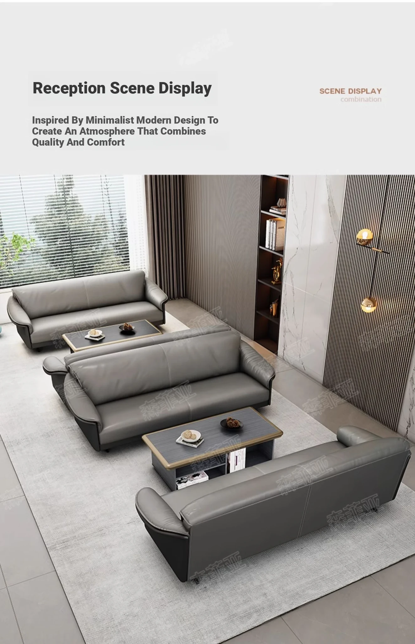 Elegant Italian-Style Office Sofa and Coffee Table Set for Reception Areas - Perfect for Meetings and Business Spaces, Combining Minimalism with Luxury and Comfort.