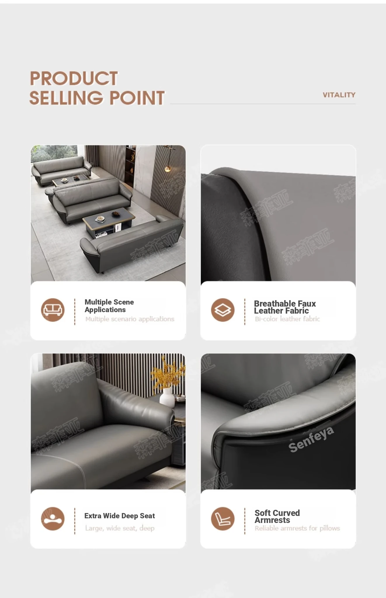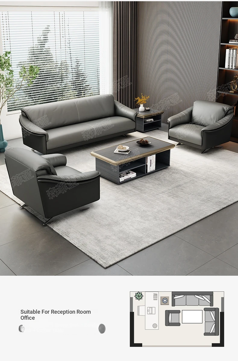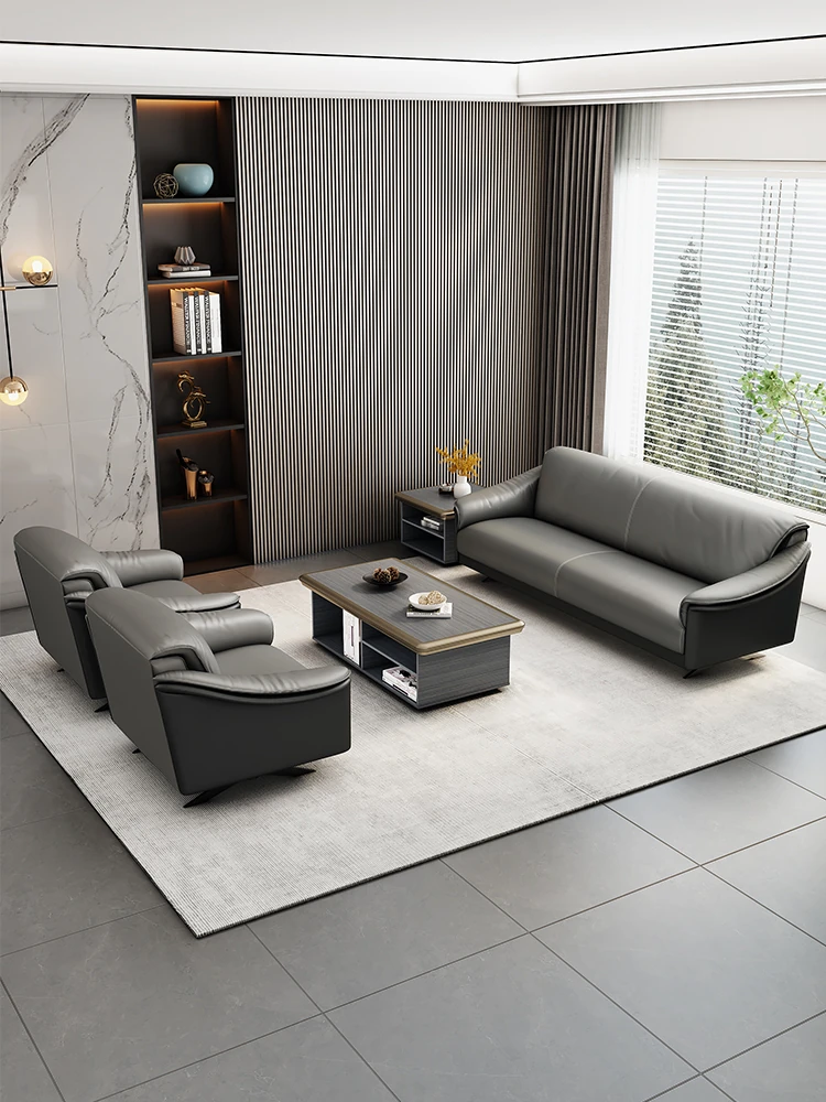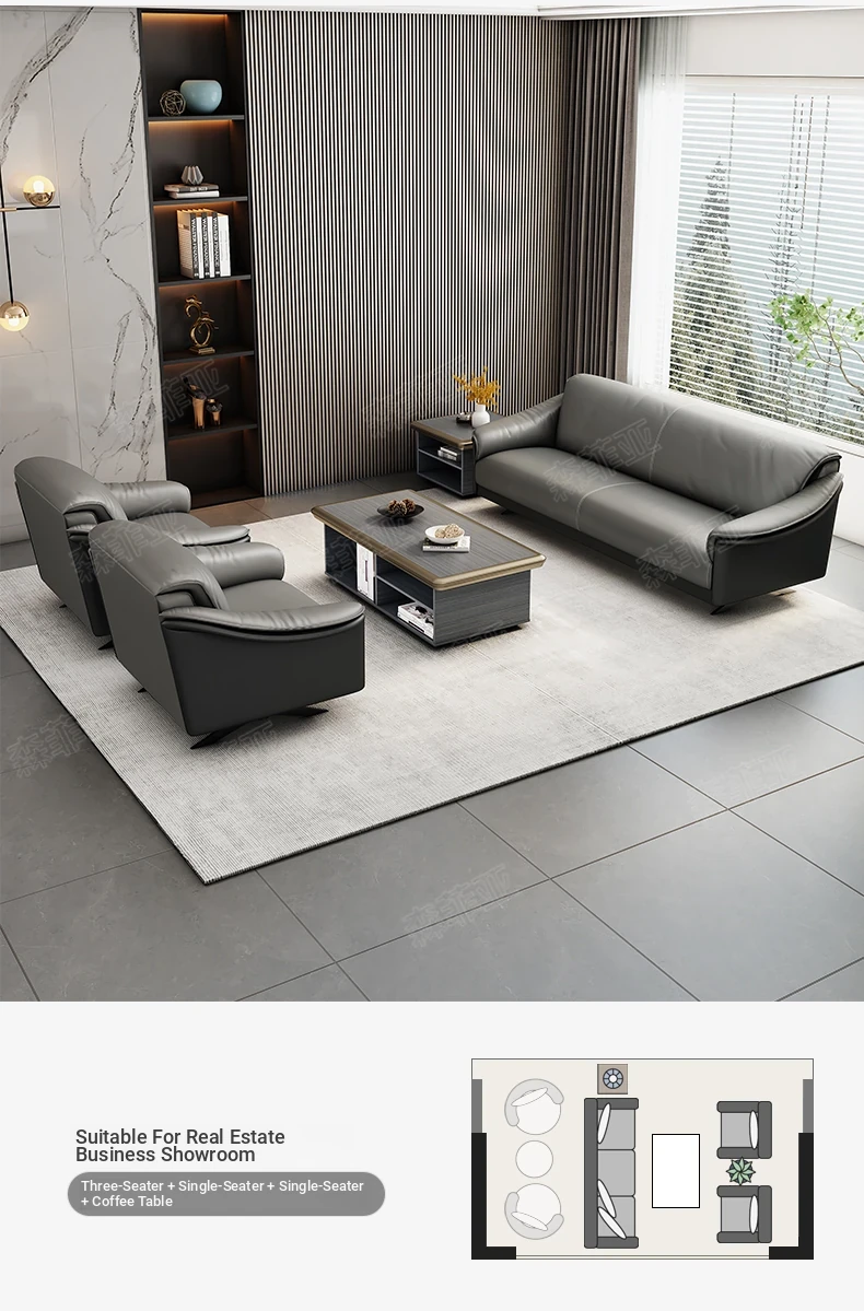 Elegant Italian-Style Office Sofa and Coffee Table Set for Reception Areas - Perfect for Meetings and Business Spaces, Combining Minimalism with Luxury and Comfort.