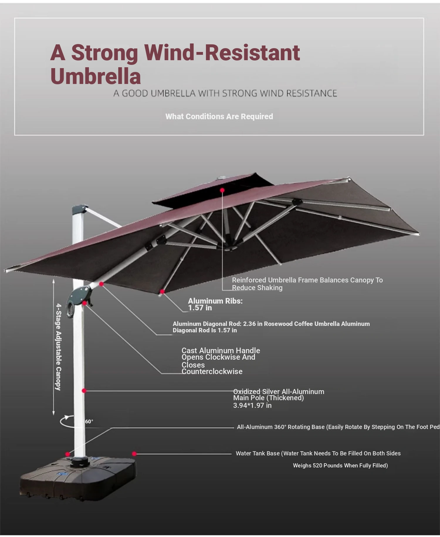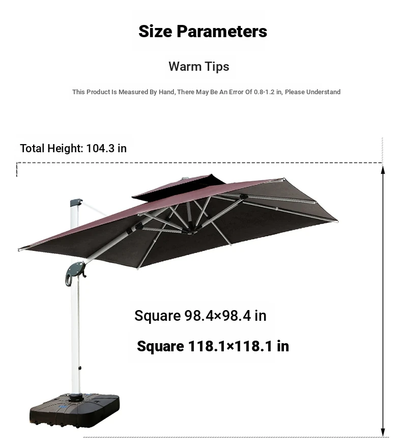 Silver Oxide Umbrella Rod-Square 118.11in*157.48in [Upgrade 4.13in Wind Resistant Column + Overweight Water Tank]]