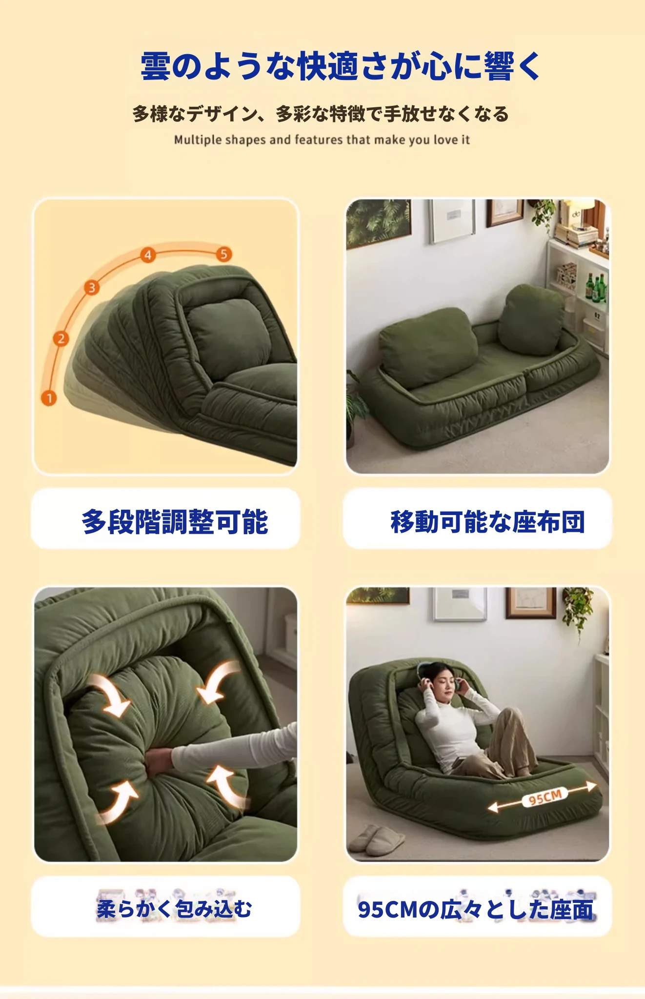 人間用犬の巣!リラックスできるラウンジソファ - 寝転んだり、座ったりできる小型デザイン!2024年新作、バルコニーや寝室にぴったりなファブリックソファ!快適さとスタイルを両立させた理想のアイテム!