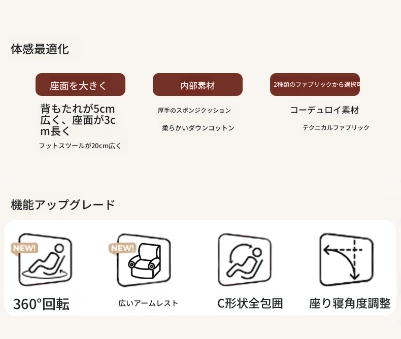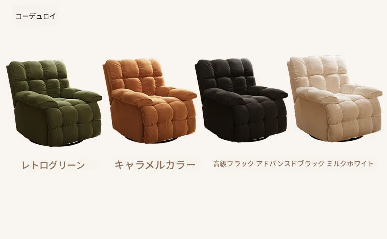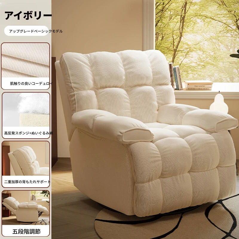 【アップグレードスキンフレンドリーコーデュロイ-五段調整】クリームホワイト-手動リクライニング-回転可能
