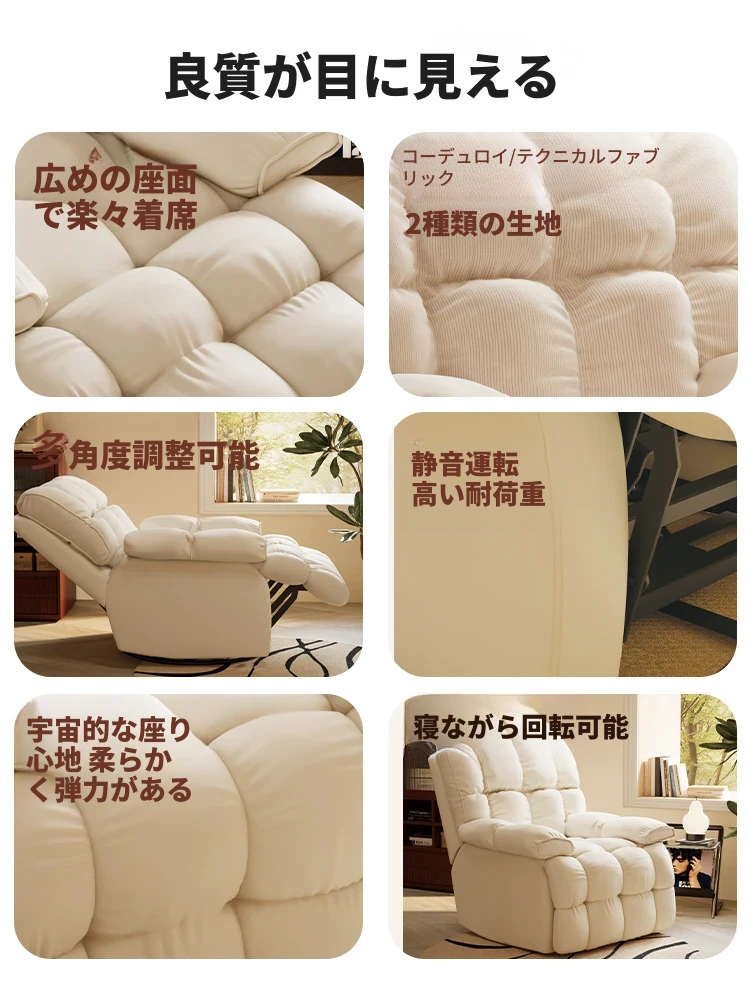 【五防テクノロジー布-五段調整】クリームホワイト-手動リクライニング-回転可能