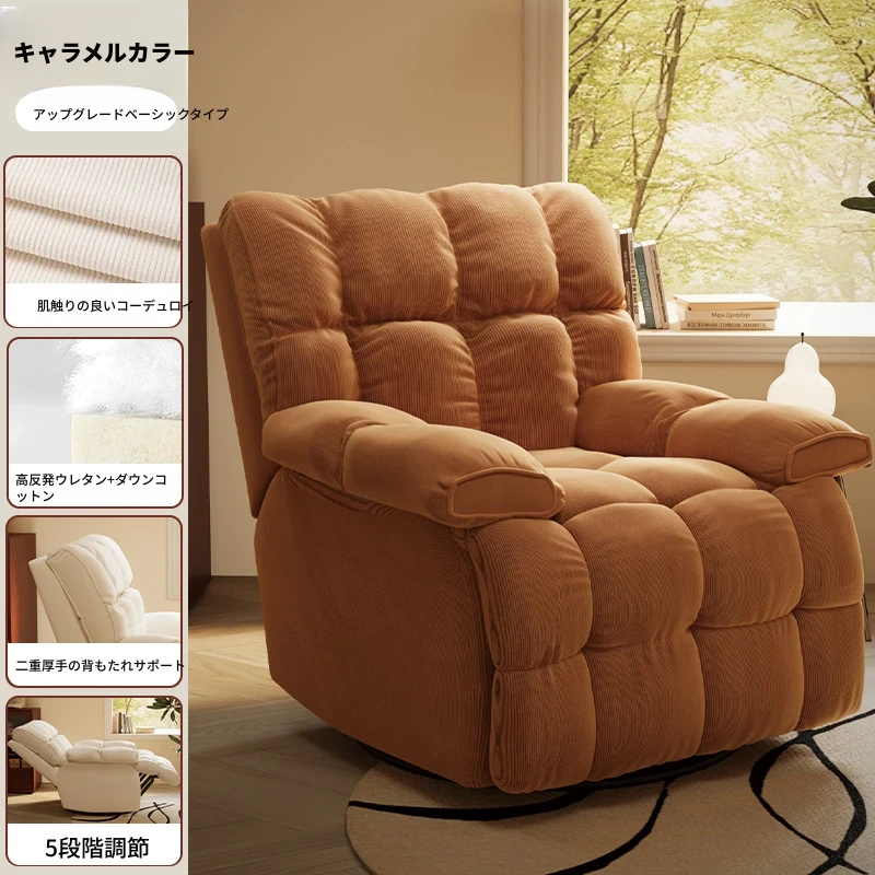 【アップグレードスキンフレンドリーコーデュロイ-五段調整】キャラメルカラー-手動リクライニング-回転可能