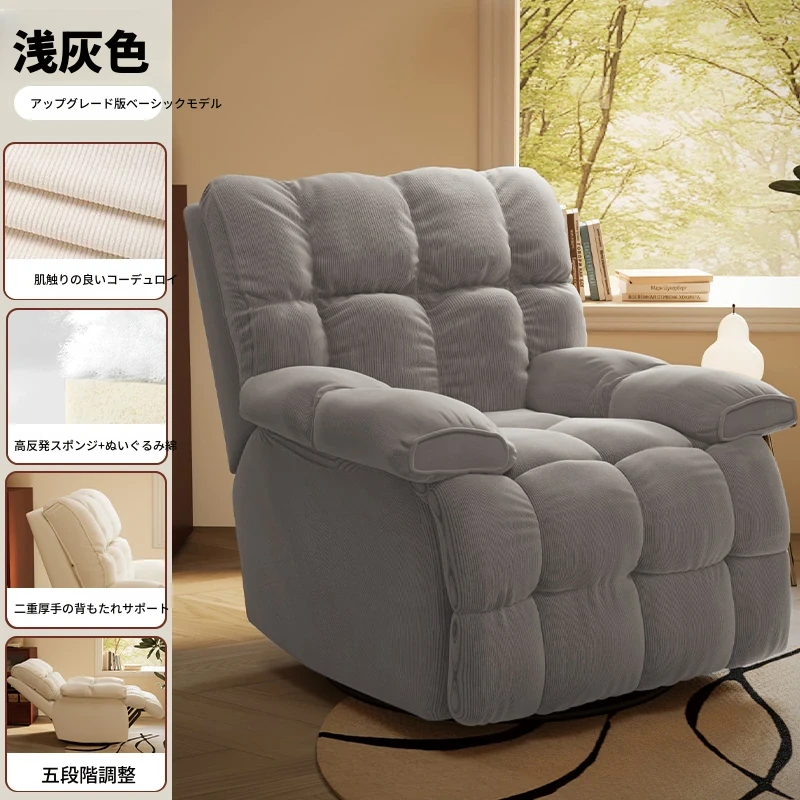 【アップグレードスキンフレンドリーコーデュロイ-五段調整】ライトグレー-手動リクライニング-回転可能
