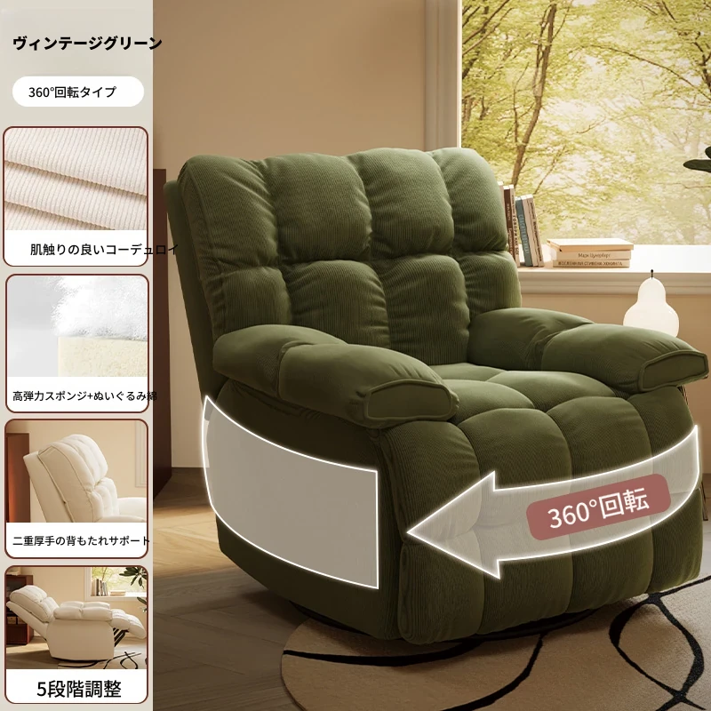 【アップグレードスキンフレンドリーコーデュロイ-五段調整】レトログリーン-手動リクライニング-回転可能