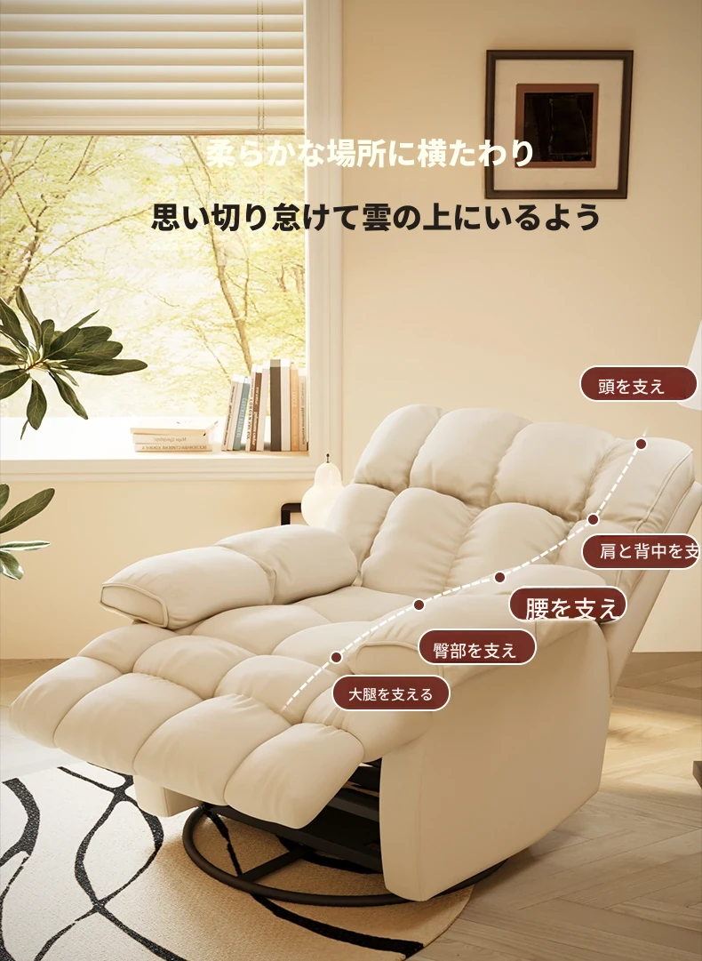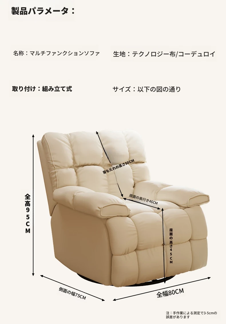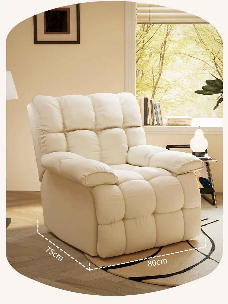2025年新作!リビングにぴったりな小型布製ソファ。リクライニング機能付きで、寝転んだり、寝たりできるシングルスペースカプセル。多機能な怠け者向けリクライニングチェアで、快適なひとときをお楽しみください!