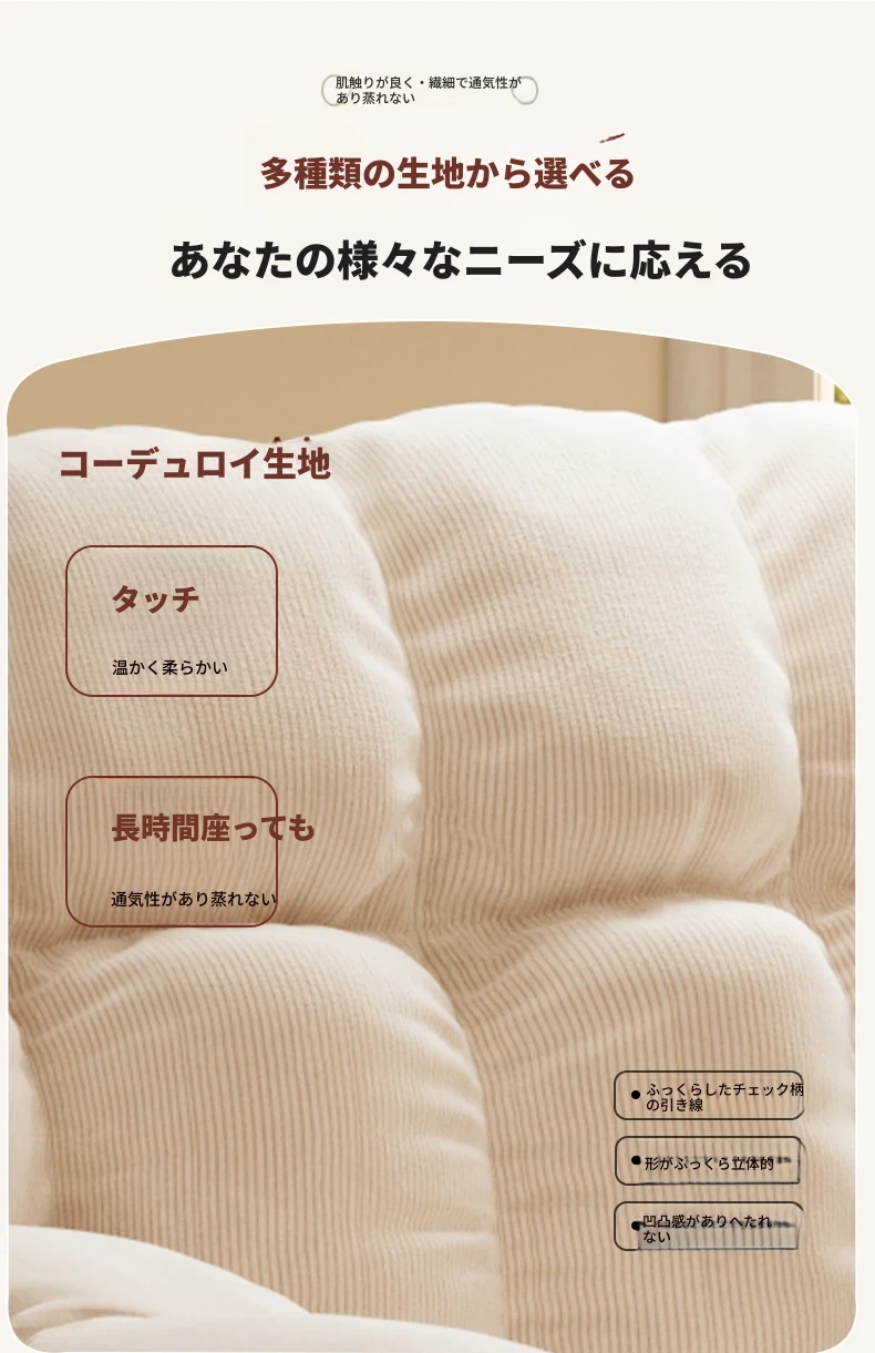 【アップグレードスキンフレンドリーコーデュロイ-五段調整】クリームホワイト-手動リクライニング