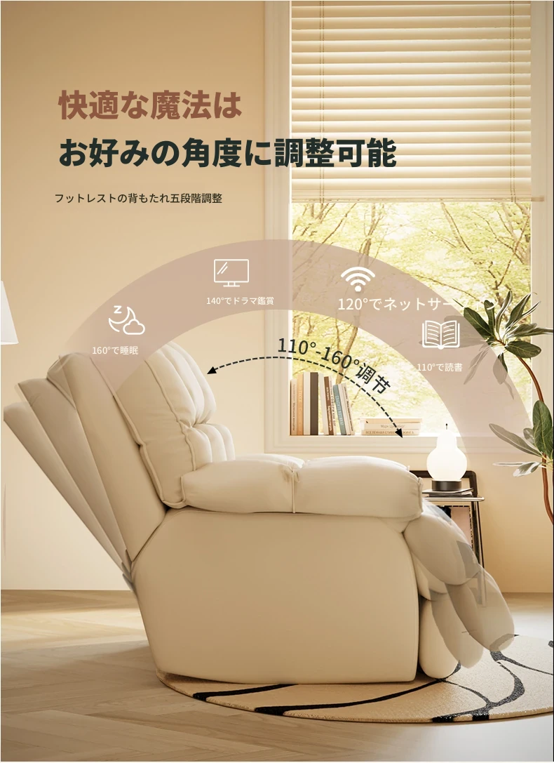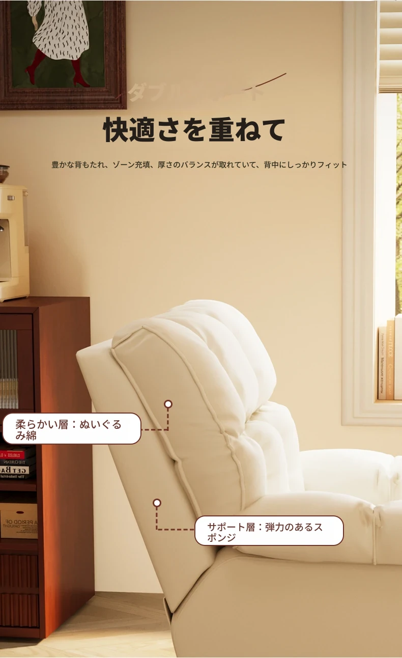 【五防テクノロジー布-五段調整】クリームホワイト-手動リクライニング