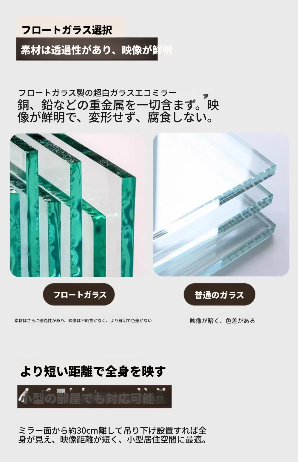 全身鏡 おしゃれな試着鏡 自宅用 女子向け 壁掛け&スタンド両用 大型ガラスミラー 寝室にぴったり!おしゃれなコーディネートを楽しもう!