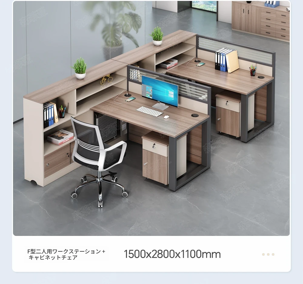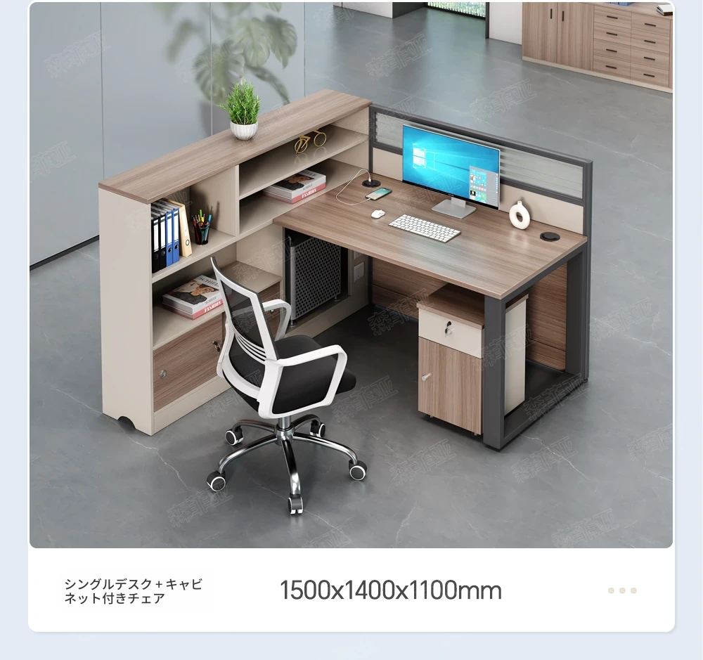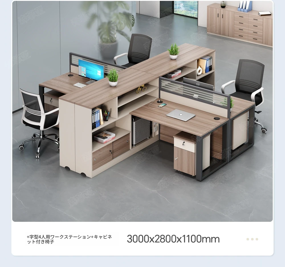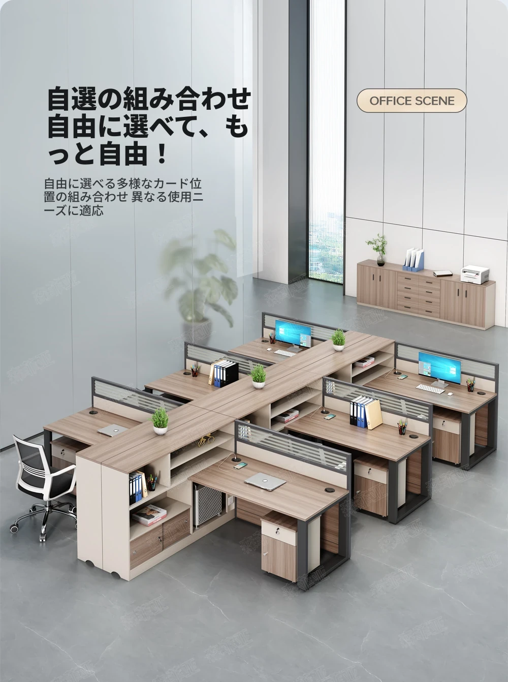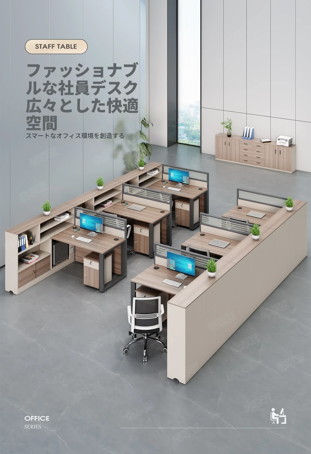 シンプルでモダンなファイナンシャルデスクセット|オフィス用デスク&チェア、パーティションで快適な作業空間を実現!L型デスクで効率的なレイアウトを。従業員スペースに最適!