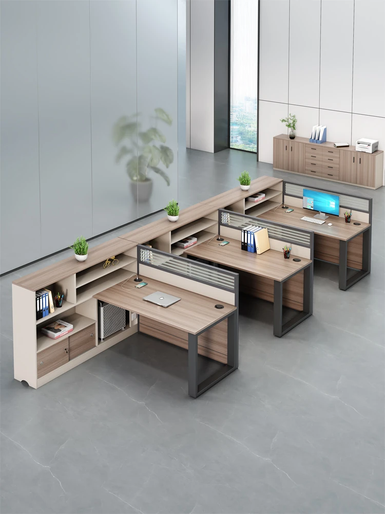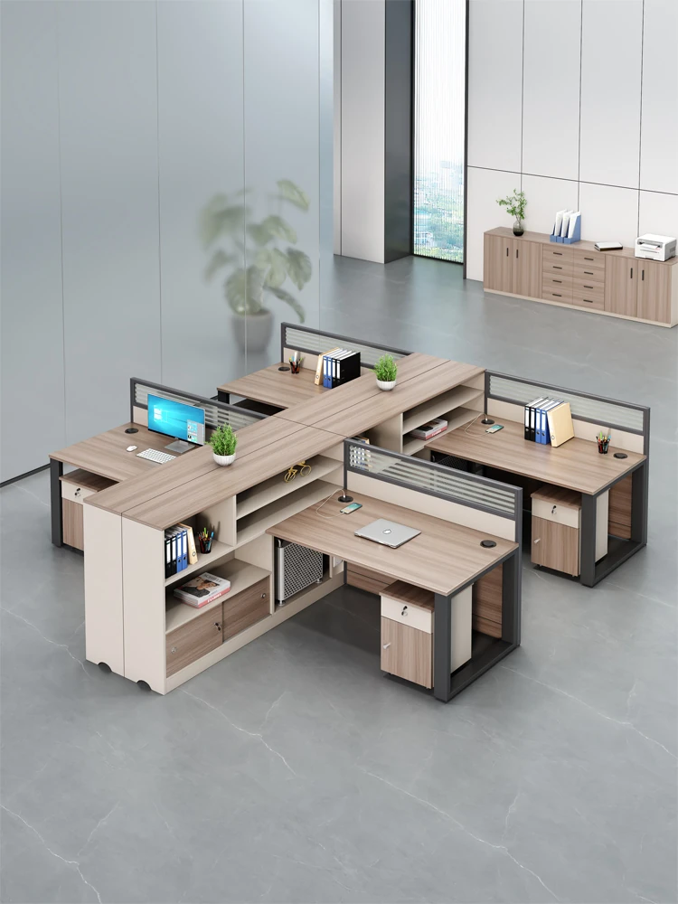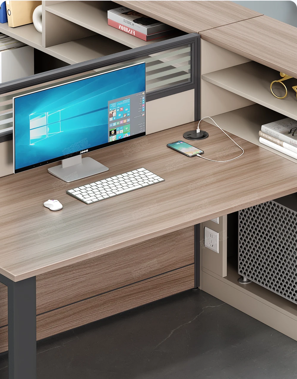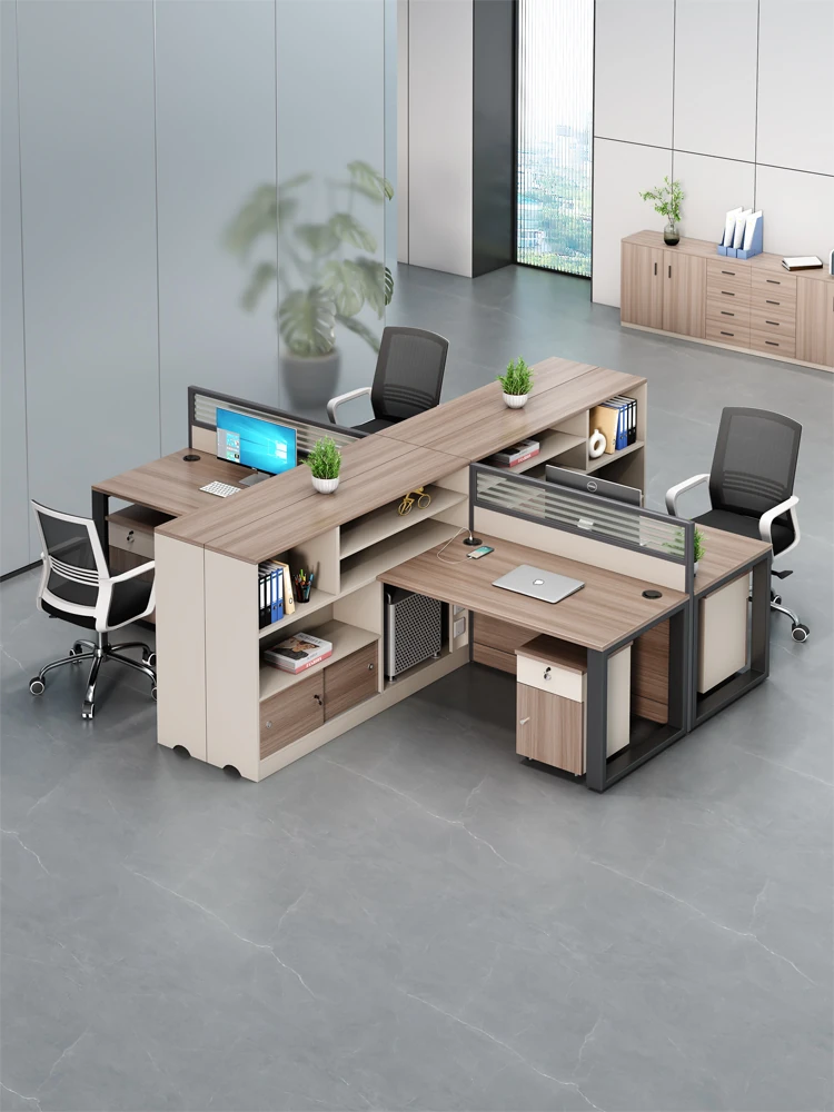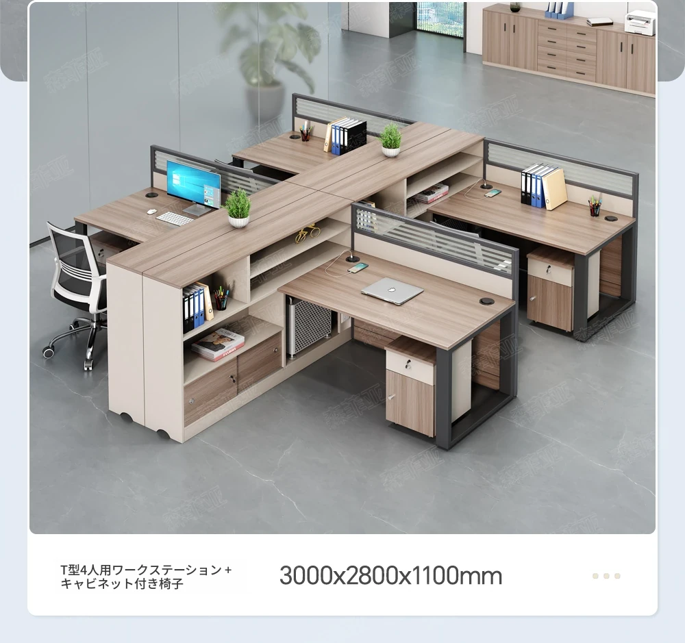 シンプルでモダンなファイナンシャルデスクセット|オフィス用デスク&チェア、パーティションで快適な作業空間を実現!L型デスクで効率的なレイアウトを。従業員スペースに最適!