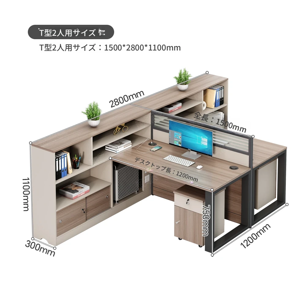【E0級環境保護ボード】1.5メートルT型二人用+キャビネット 【無料配送・設置】