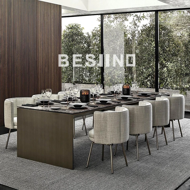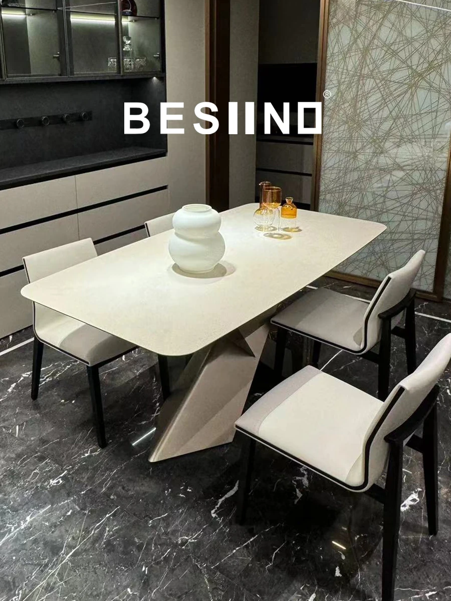 Retro Industrial Style Bauhaus Dining Table with Rock Slab and 304 Stainless Steel Mirror Finish - Stylish Laminate Dining Table for Modern Homes